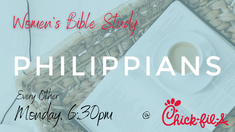 If you are interested in joining other women in an inductive bible study on the book of Philippians, contact Jessi Johnson (jessiwj@gmail.com). The study will be 10 weeks, meeting every other Monday, 6:30 - 8pm @ Chick-fil-A, 501 Memorial Drive, Chicopee, starting January 19.