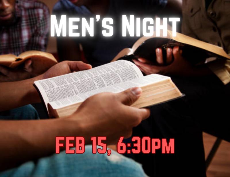 Men, join us for our monthly gathering. We will have a time of fellowship, food, and the Word of God. Come and connect, eat, study, learn, and pray together on Sunday, February 15 at 6:30 p.m. @ CPC