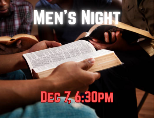 Men, join us for our monthly gathering. We will have a time of fellowship, food, and the Word of God. Come and connect, eat, study, learn, and pray together on Sunday, December 7 at 6:30 p.m. @ CPC